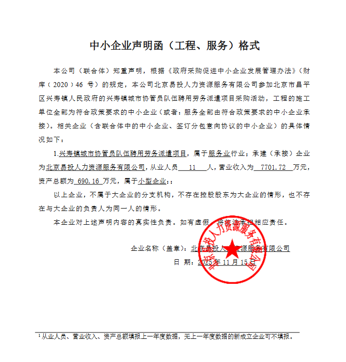 二、项目名称:兴寿镇城市协管员队伍聘用劳务派遣项目