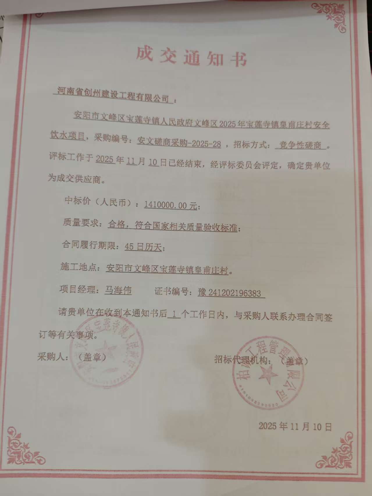 | 1 | 文峰区2025年宝莲寺镇皇甫庄村安全饮水项目 | 皇甫庄村内 | 31 | 马海伟 | 豫******6383 |