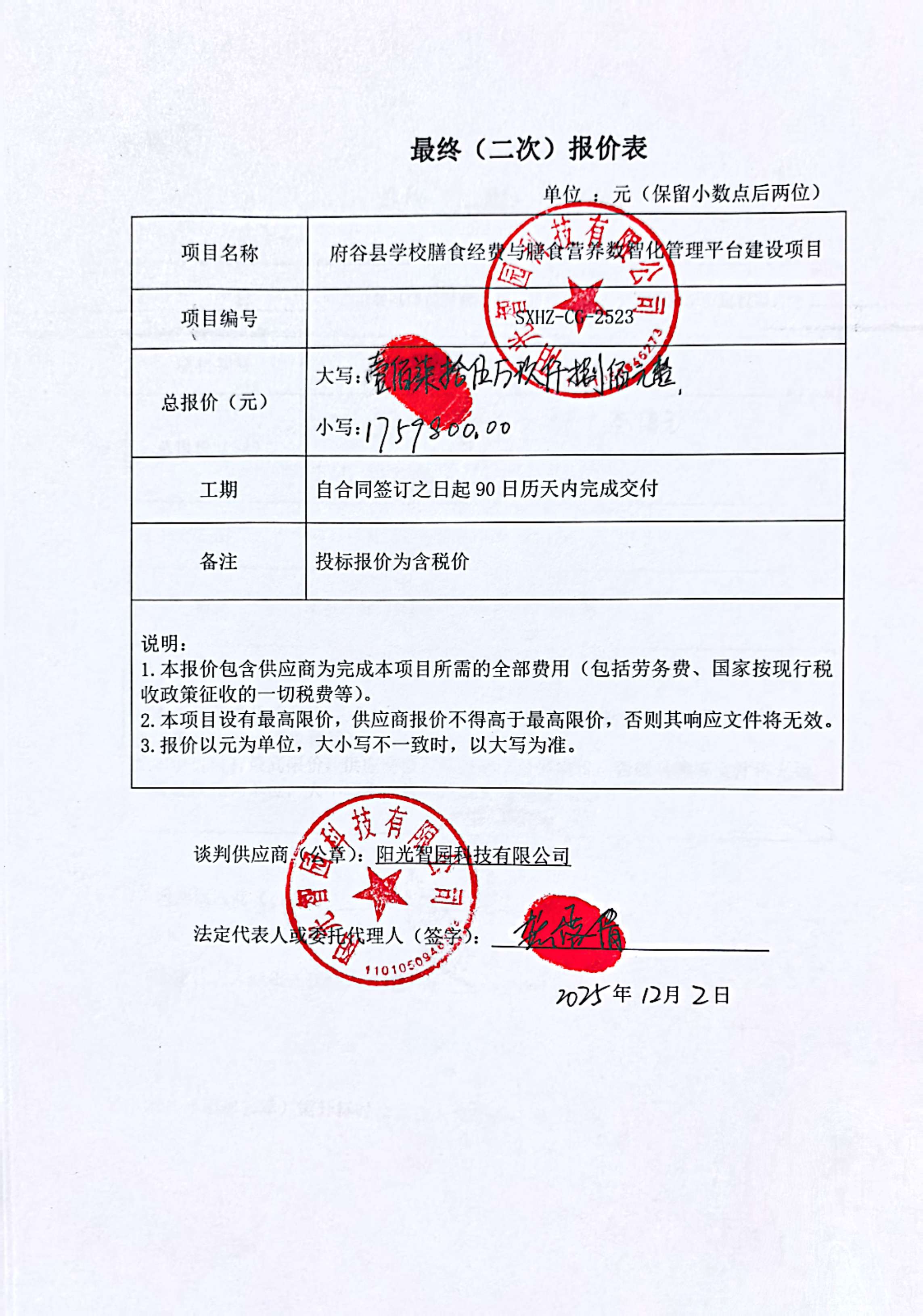 ******学校膳食经费与膳食营养数智化管理平台建设项目中标(成交)明细.pdf 二次报价表.jpg 结论表.jpg 竞争性谈判-系统.pdf