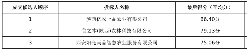 | ******有限公司 | 陕西省西安市灞桥区现代纺织产业园纺园四路8号向阳农科苑一层 | 综合评分法 | 否 | 298,000.00元 | 86.40 |